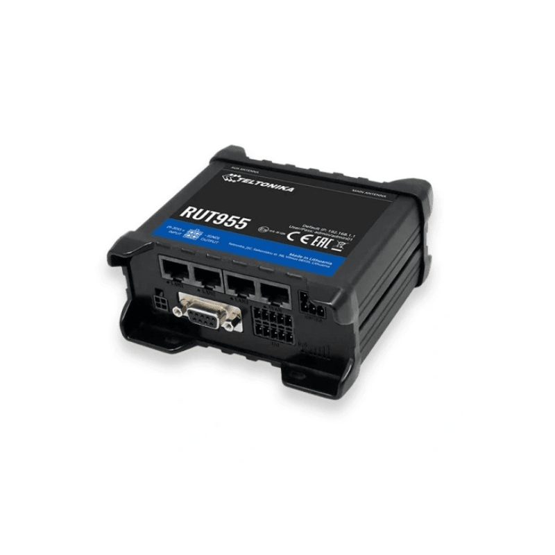 RUT955 posiada porty szeregowe RS232 i RS485 oraz fizyczny port WAN ethernet, dla podłączenia stacjonarnego łącza szerokopasmowego. Urządzenie obsługuje m.in.: połączenia PPPoE, statyczne IP, zmienne IP (klient DHCP), IPSec, OpenVPN, GRE Tunnel, PPTP oraz L2TP.